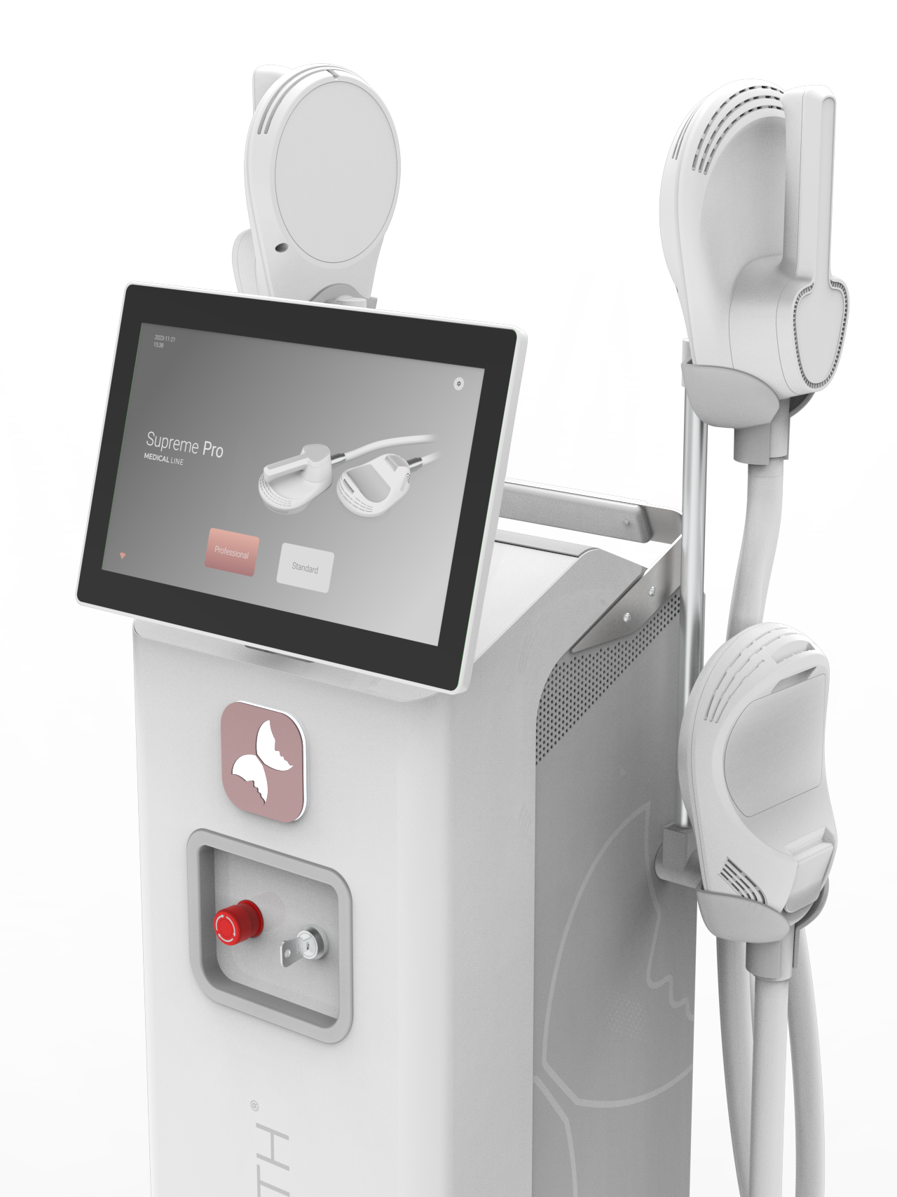 Supreme Pro: La estimulación se produce mediante la emisión combinada de ondas electromagnéticas y radiofrecuencia. Las primeras penetran hasta 8 cm de profundidad, alcanzando el tejido muscular, mientras que la radiofrecuencia actúa en la dermis.